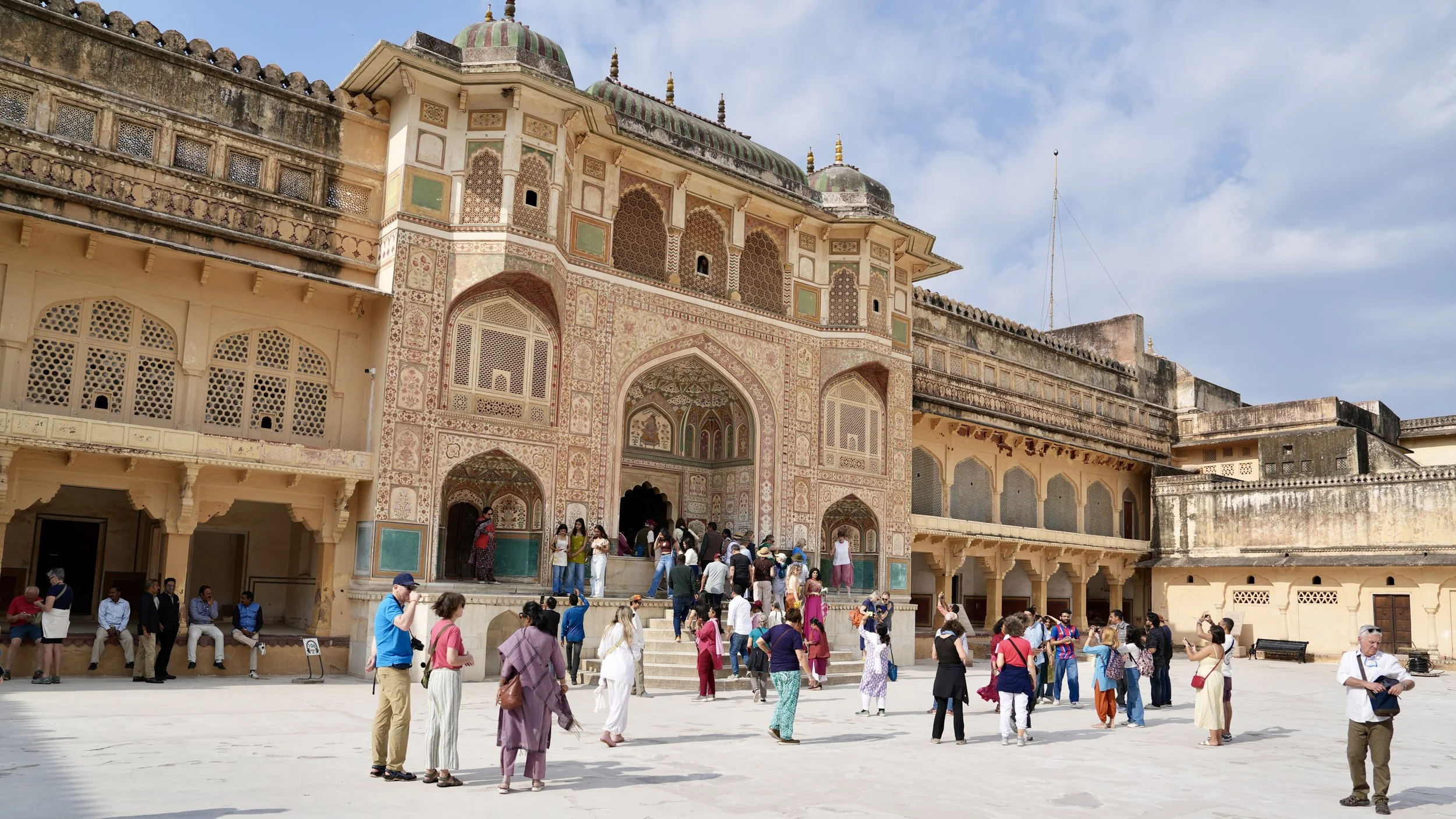 We swapped our coach for jeeps to climb the steep approach road. The alternative is to walk, or to ride one of the elephants that carry visitors up each day. The elephants were already at work, painted and adorned, but for many of us that option would have felt uncomfortable. The jeeps, though caught in a sluggish line of traffic, felt the more sensible compromise, even if, at times, walking might genuinely have been quicker.