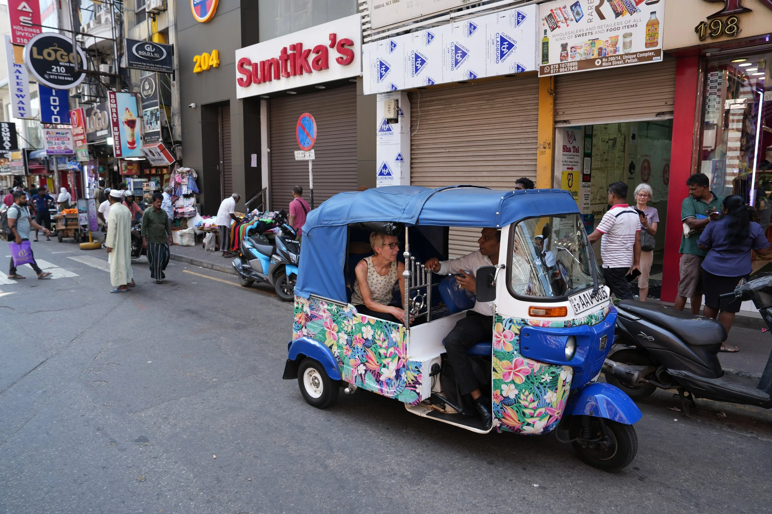 Our first stops took us through the older parts of the city, where wide colonial buildings with white arches and shaded walkways lined the streets, reminders of the British period that still shapes much of Colombo’s centre. In places the architecture felt almost European, but step onto the next street and the atmosphere changed completely, with busy shopfronts, bright signs, tuk-tuks weaving through the traffic, and handcarts piled high with boxes being pushed along the roadside.