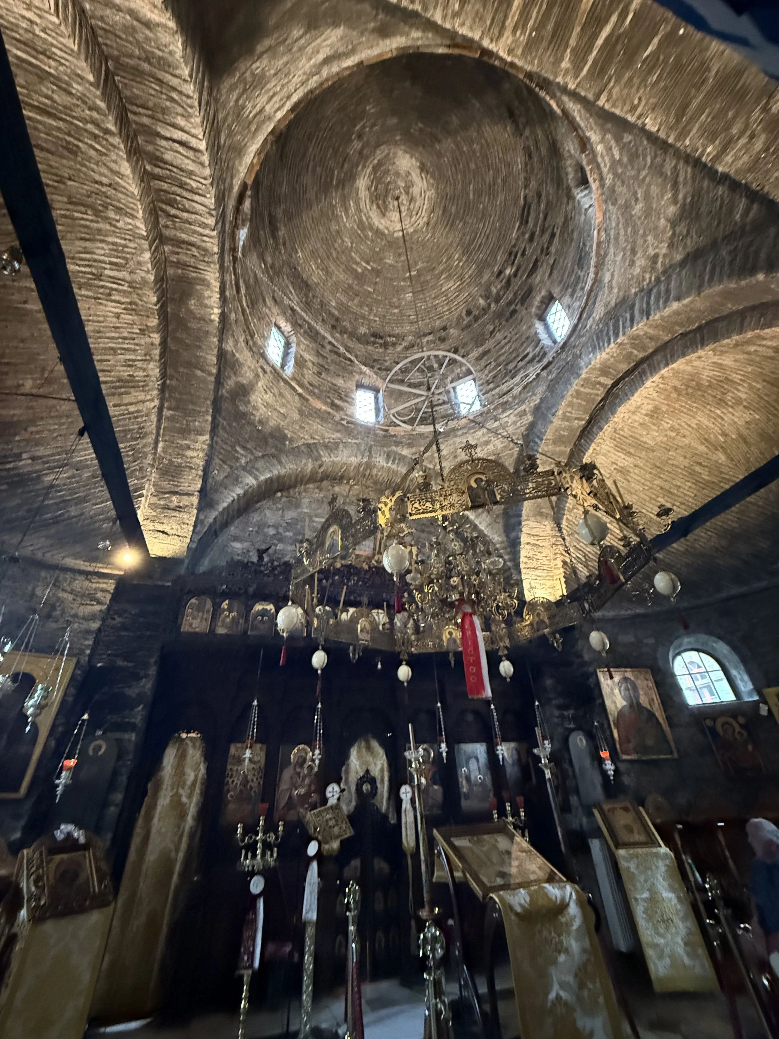 Inside the church, the atmosphere changed again. Light filtered through small windows high in the stone walls, falling gently across icons, candles and worn surfaces shaped by centuries of use. The space felt cool and contained, inviting stillness without asking for it. I sat for quite a while — long enough, in fact, for the others to send someone to come and look for me.